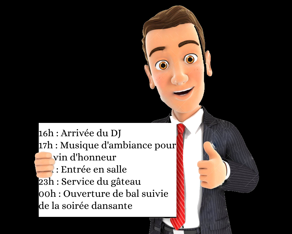 Notre objectif : vous offrir une soirée mémorable, pour vous et vos invités. À la fin de l’événement, nous recueillons vos impressions afin de nous assurer de votre entière satisfaction. Votre avis est précieux et contribue à l’amélioration continue de nos services. Ensemble, nous aurons créé des souvenirs inoubliables !